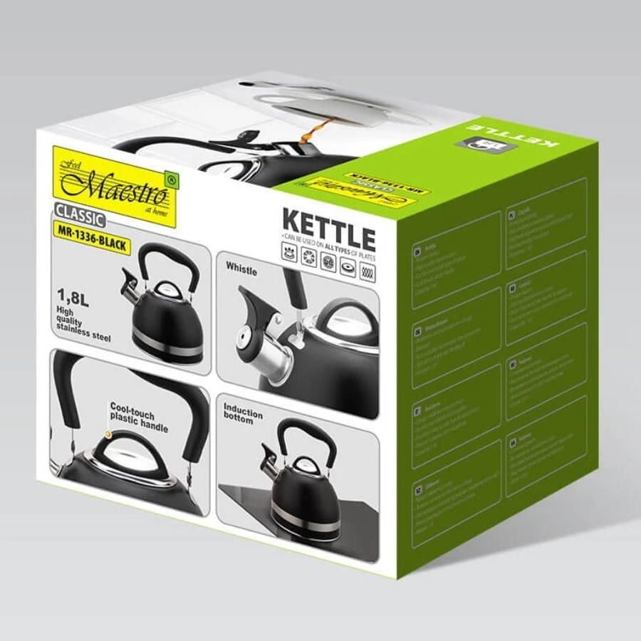Czajnik tradycyjny Maestro MR-1336-BLACK o pojemności 1,8 litra to idealne rozwiązanie dla każdego miłośnika herbaty i kawy.