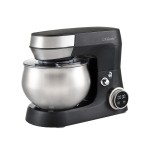 Urządzenie jest wyposażone w wyświetlacz LED z regulacją prędkości i czasu pracy, co ułatwia kontrolowanie ustawień. Pokrywa misy zapobiega rozchlapywaniu podczas pracy, a przezroczysta osłona z otworem umożliwia dodawanie składników w trakcie miksowania. Funkcja automatycznego zatrzymania działa podczas podniesienia głowicy, zapewniając bezpieczeństwo użytkowania.