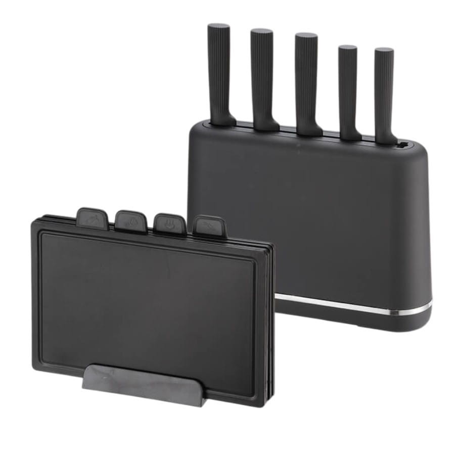 Feel-Maestro Zestaw noży + desek na podstawce MR-1412-BLACK