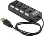 Hub USB 2.0 4-Portowy, kolor czarny, USB 2.0 - szybki transfer danych do 480 Mbps. Praktyczny zintegrowany kabel USB.