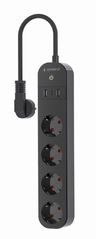 Gembird Inteligentna listwa Tuya 4xDE 2xUSB-A 1xUSB-C Czarna