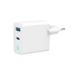 Szybka ładowarka USB 2-portowa 65W GaN, LED, biała