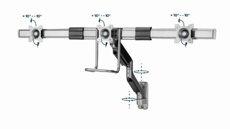 - Uchwyt ścienny do monitora z pojedynczym ramieniem na 3 monitory
