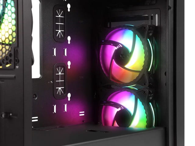 - Abyś Ty mógł być spokojny o swój PC komponenty wewnątrz muszą czuć się również swobodnie w odpowiedniej dla nich temperaturze. O twoją wygodę, a bezpieczeństwo podzespołów dbają 3 wysokiej jakości wentylatory 120mm z podświetleniem ARGB, które zachowują się niezwykle dyskretnie. Jeżeli zajdzie taka potrzeba, obudowa umożliwia montaż kolejnych w tym 140mm!