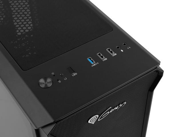 Na górze obudowy znajdują się aż 3 porty USB w tym USB 3.0. W trosce o Twoją wygodę, umieściliśmy tam także dwa gniazda jack, byś mógł jak najbliżej wpiąć swoje słuchawki, czy też mikrofon. Dopełnienie stanowi przycisk odpowiedzialny za zmianę trybów bajecznego podświetlenia ARGB, by w danym momencie wyglądało tak jak Ty chcesz.