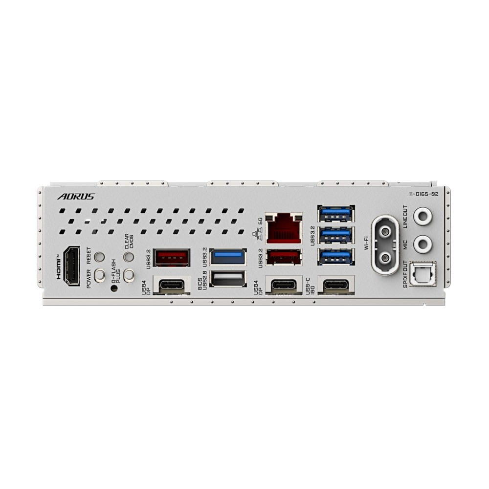 Złącza zewnętrzne: 1 x RJ-45, 1 x Przycisk Q-Flash Plus, 1 x Przycisk Clear CMOS, 2 x USB4 Typ-C, 2 x SMA, 1 x HDMI, 1 x Line Out (przód), 1 x MIC, 1 x USB 3.1 Type-C, 1 x S/PDIF, 1 x USB 2.0, 4 x USB 3.0, 2 x USB 3.2 Gen 2 Type-A