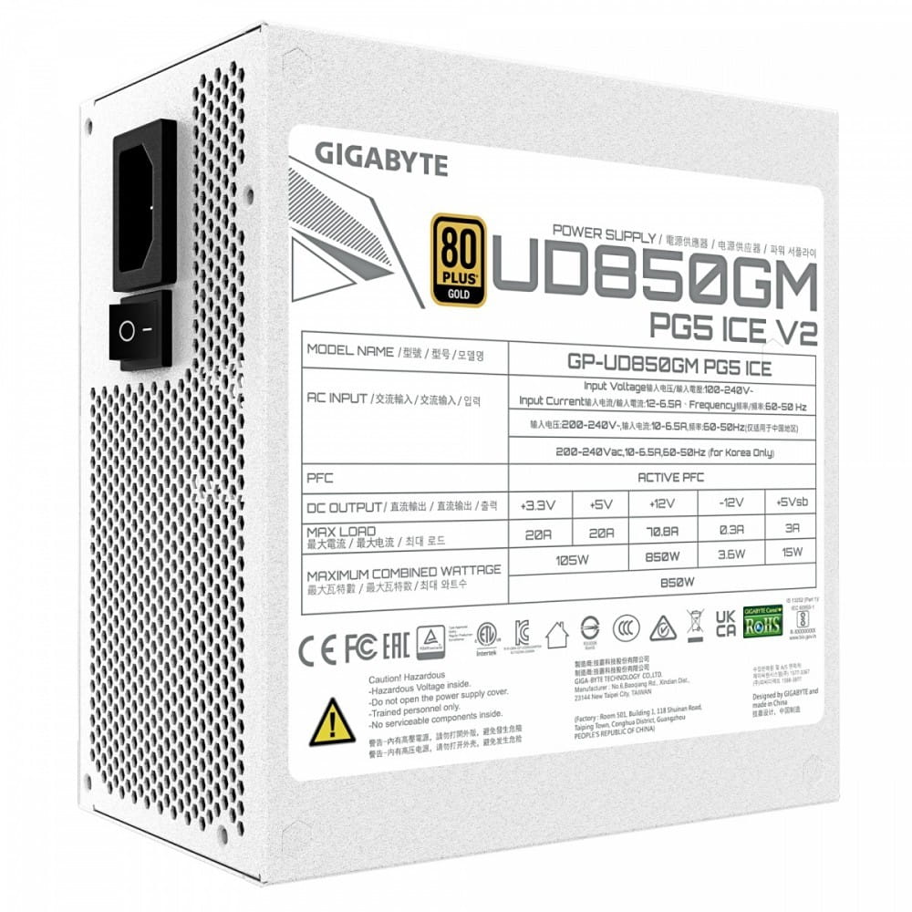 Gigabyte Zasilacz modularny 850W GP-UD850GM PG5 V2 ICE 80+ Gold