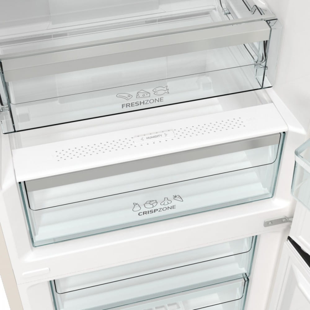 Dzięki innowacyjnie zaprojektowanemu, błyszczącemu i gładkiemu wnętrzu chłodziarko-zamrażarki Gorenje GardenFresh są wyjątkowo łatwe w czyszczeniu, dzięki czemu żywność pozostaje zdrowa i bezpieczna.