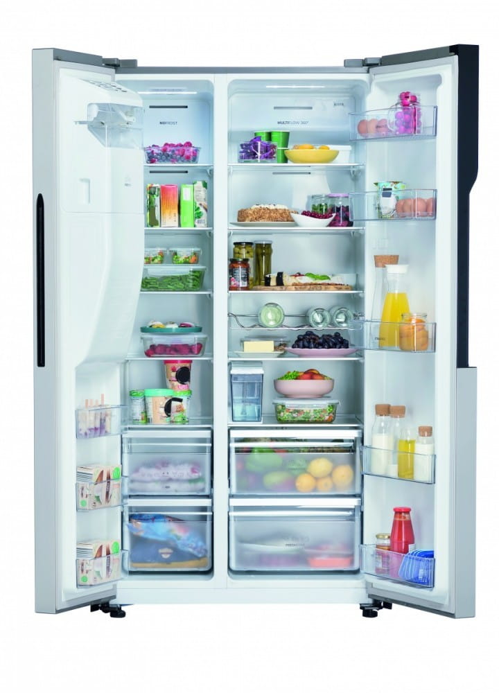 Funkcje: Zapobieganie wypadaniu butelek, Szybkie chłodzenie, Szybkie zamrażanie, Dystrybutor wody, EcoMode, Holiday, Komora fresh / zero, Kostkarka lodu, MultiFlow 360°, Otwarte drzwi, CrispZone