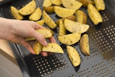 Perforowana emaliowana taca umożliwia zwiększony przepływ gorącego powietrza, dzięki czemu wszystkie potrawy smażone poprzez "powietrze" są wyjątkowo chrupiące i smaczne. Jednocześnie nadaje się również do gotowania na parze potraw w piekarnikach z funkcją SteamAssist.