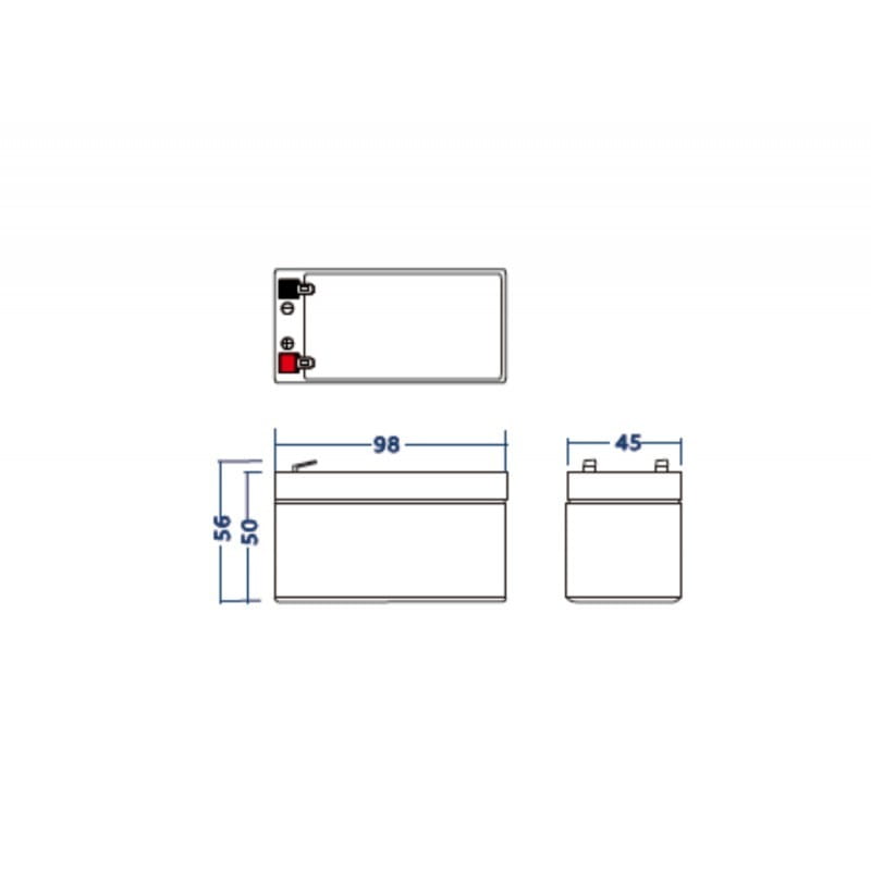 Pozostałe informacje: Terminal - Faston 187 (F1) Rezystancja wewnętrzna 70 (przy temp. 25°C) Samorozładowanie 2% w ciągu miesiąca (przy temp. 25°C) Zastosowanie - do systemów alarmowych i zabawek Pojemność wg. temperatury (40 °C - 102%) (40 °C - 100%) (0 °C - 85%) (-15 °C - 65%) Ładowanie buforowe 13.5 13.8 V (-20 mV/C) Ładowanie cykliczne 14.5 14.9 V (-30 mV/C) Maksymalny prąd ładowania 0.39 A