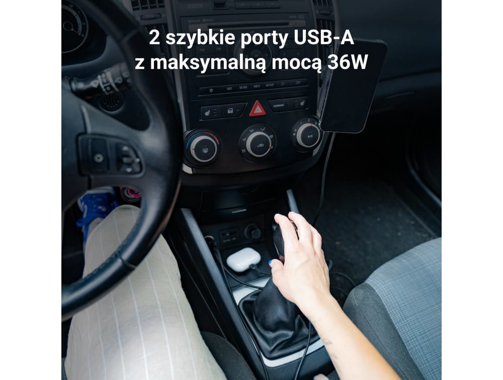 - Podwójna moc - dwa porty USB -A o łącznej mocy 36W gwarantują szybkie ładowanie twojego smartfona, kamery samochodowej czy nawigacji, zawsze gotowe do działania.