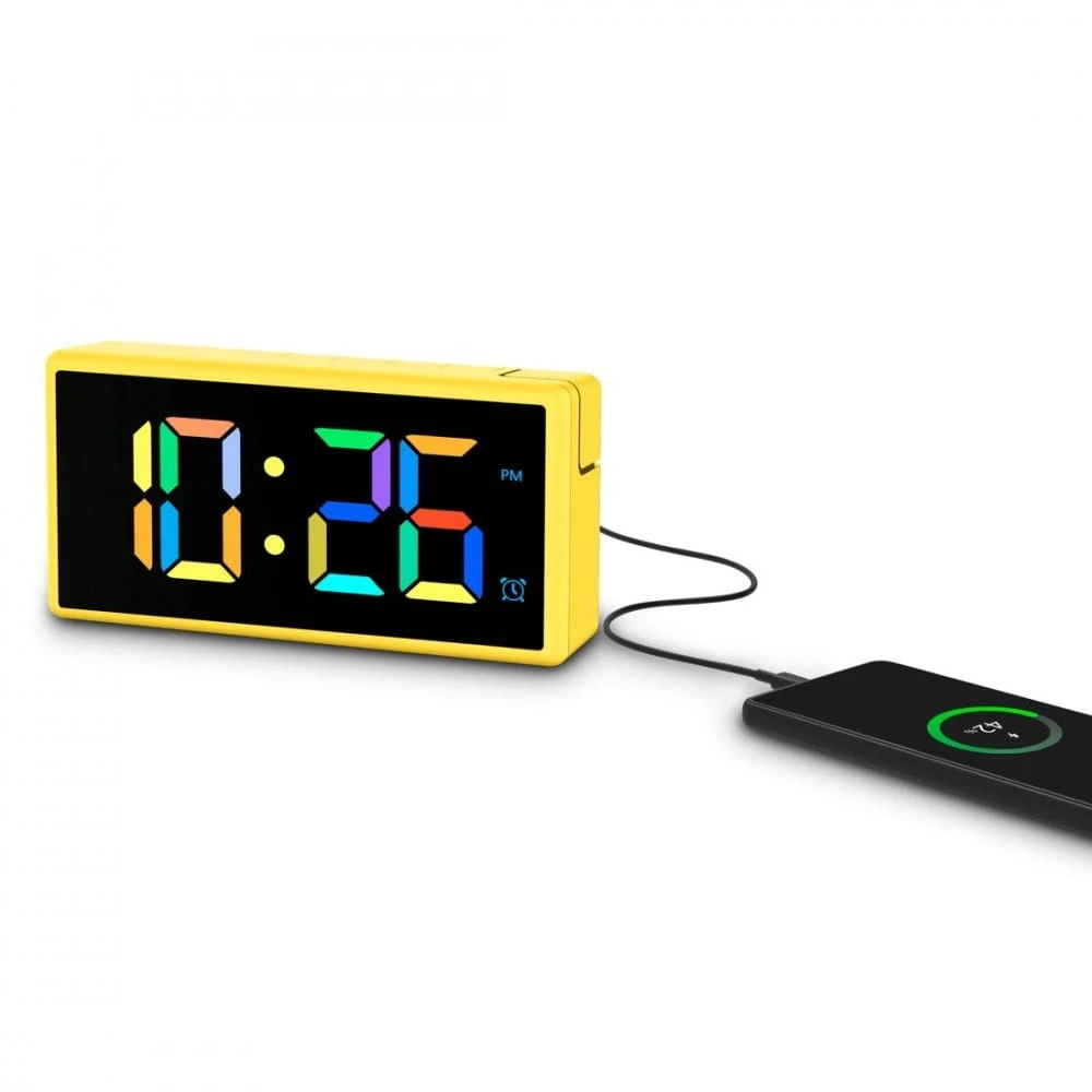 Cztery poziomy jasności wyświetlacza sprawiają, że możesz komfortowo korzystać z budzika zarówno w ciągu dnia, jak i w nocy. Tryb wyłączenia ekranu podczas ładowania urządzeń przez USB zapewnia spokojny sen bez zbędnych rozproszeń.