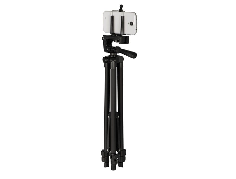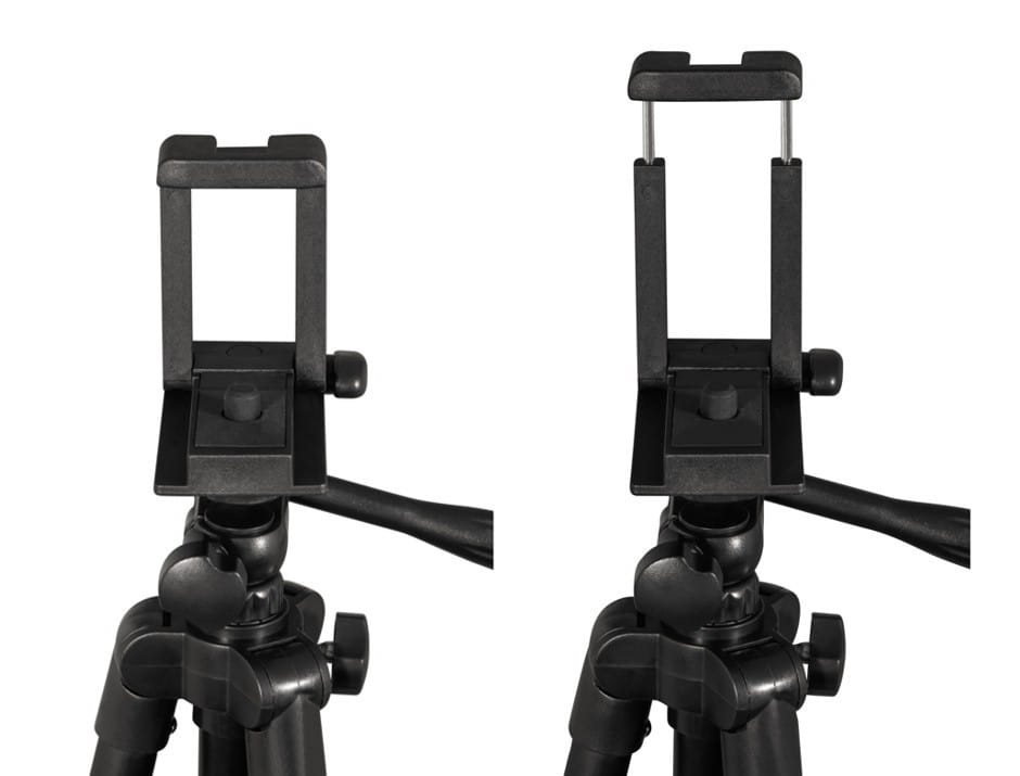 Pozostałe parametry: Stabilne mocowanie telefonu lub tabletu Pasuje do smartfonów w rozmiarze od 5,5 do 8,2 cm i tabletów o szerokości od 11,2 do 18,5 cm (w formacie poziomym) Piankowe wkładki uchwytu zabezpieczają urządzenie przed zarysowaniem Pasuje do statywów z mocowaniem 1/4"
