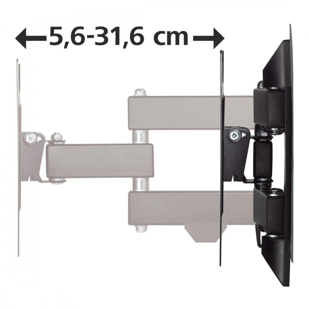 Po zamocowaniu telewizora uchwyt ścienny można w pełni dopasować do własnych potrzeb i zmieniać ustawienie w dowolnym momencie. Dzięki temu obraz zawsze będzie idealnie widoczny z każdego punktu pokoju. Hama Fullmotion pozwala na pochylenie telewizora, przesuwanie go na boki, przybliżanie i oddalanie od ściany.