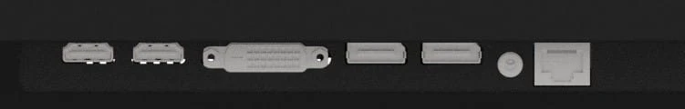 Gniazda we/wy: 2 x HDMI, 1 x 3,5 mm minijack, 1 x DisplayPort, 2 x USB 2.0, 1 x RS-232 (COM), 1 x RJ-45 LAN