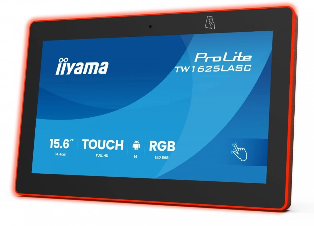 IIYAMA Monitor 16 cali TW1625LASC-B3PNR ANDROID 14,FHD,10PKT,450cd,2x2W, 4xUSB, 1xUSB-C,RJ45, MIC, RK3567, 4/32GB, LED lightbar, iiSign2, NFC, 24/7
