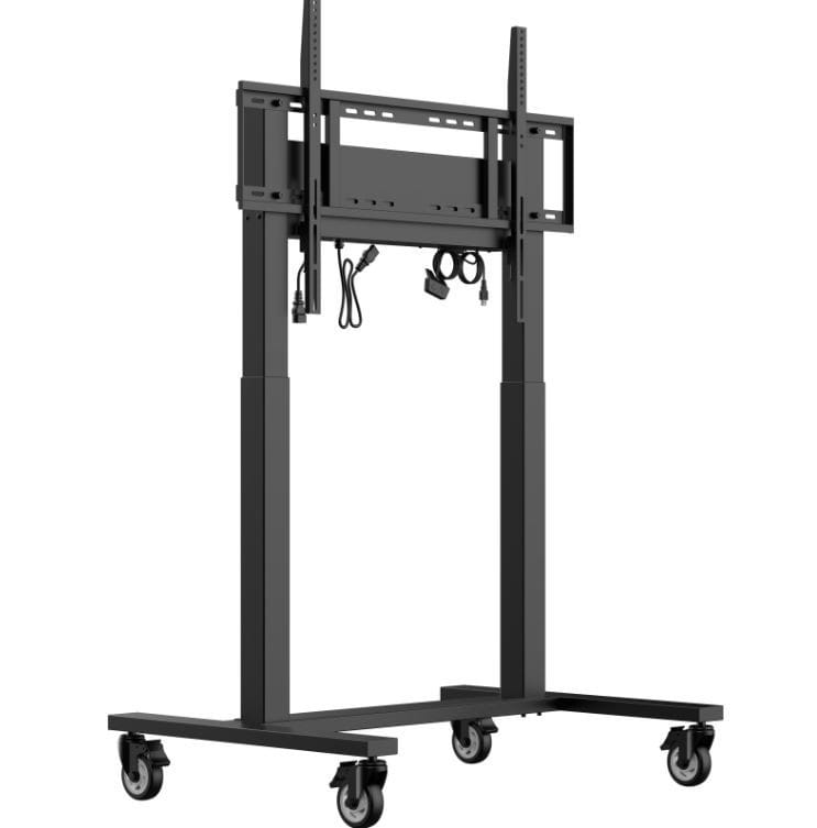 Ten mobilny stojak z elektryczną regulacją wysokości w zakresie 500 mm posiada płynną i cichą regulację, sterowaną bezpośrednio z kompatybilnego wyświetlacza iiyama SERII TE lub za pomocą dołączonego pilota. Z kolei 4-calowe, wielokierunkowe koła sprawiają, że wózek można łatwo przesunąć i ustawić w dowolnym miejscu. Ten zintegrowany wspornik obsługuje większość wzorów VESA, dzięki czemu nadaje się do każdego wyświetlacza do 86 z maksymalną wagą do 80 kg.