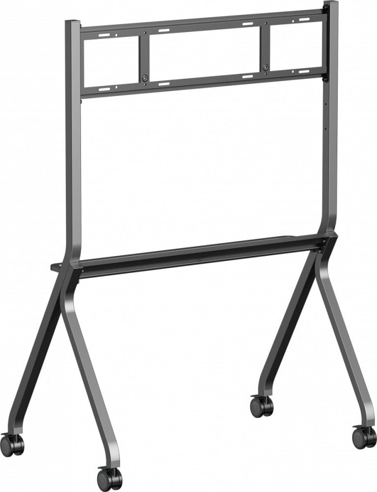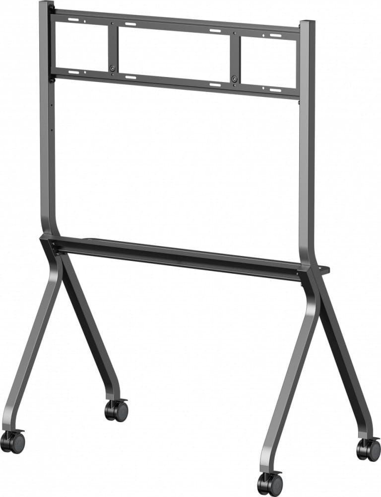 Solidny mobilny stojak z systemem antykolizyjnym, zaprojektowany z myślą o dużych wyświetlaczach (dotykowych) o przekątnej od 55 do 86 i wadze do 100 kg. Obsługuje standard VESA do 800×600 mm. Idealny do sal lekcyjnych, biur i sal konferencyjnych. Wózek posiada fabrycznie przygotowane otwory montażowe, umożliwiające szybki i precyzyjny montaż. W zależności od wielkości ekranu, zaleca się wybór jednej z trzech pozycji montażu, aby uzyskać optymalną wysokość wyświetlania.
