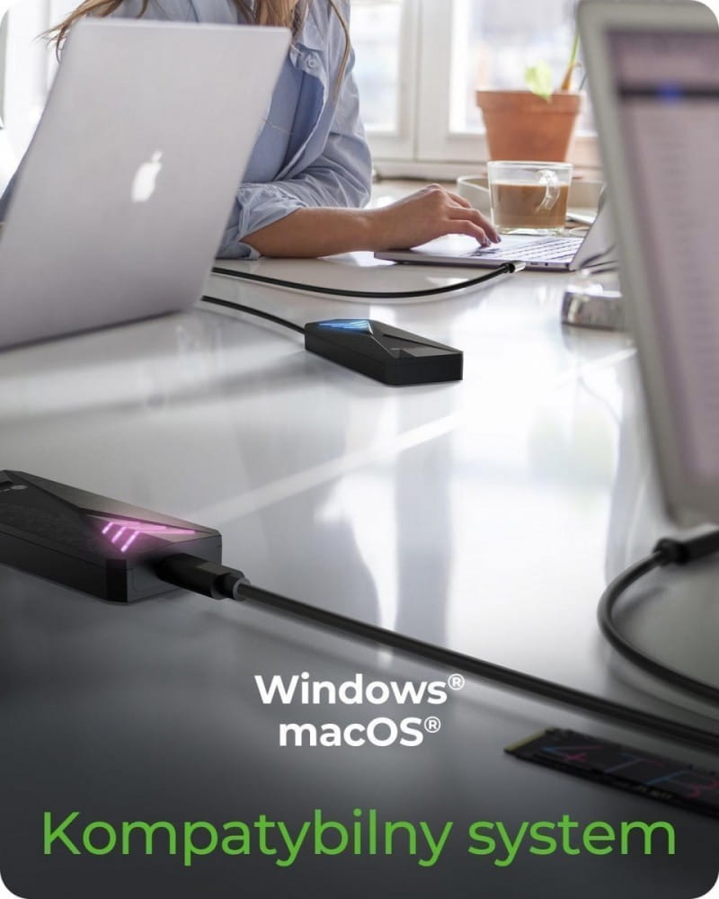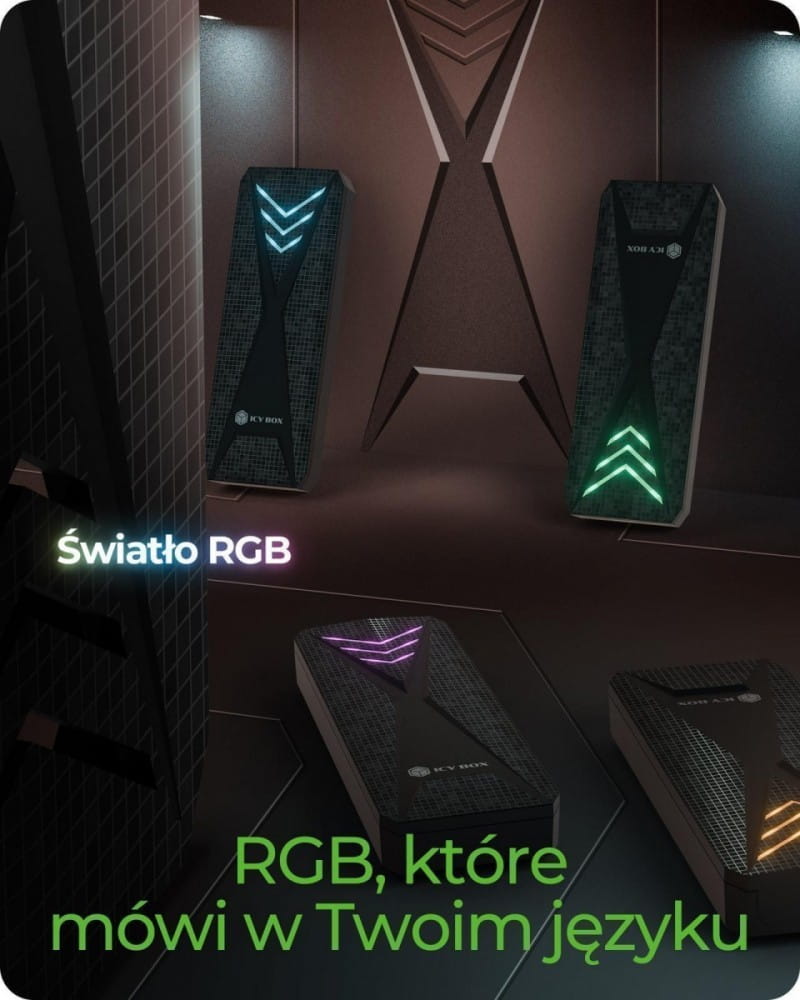Obudowa dysku SSD M.2 NVMe z USB 3.2 Gen 2 Type-C i oświetleniem RGB Opis RGB, które mówi Twoim językiem