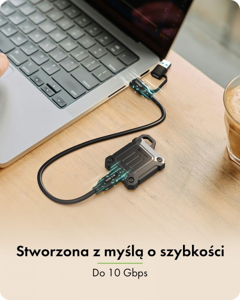 Obudowa, dostosowana do dysku SSD 2230 M.2 NVMe, zapewnia minimalizm bez utraty wydajności. Jest to idealna opcja, gdy potrzebujesz niezawodnej pamięci masowej w lekkim, przyjaznym w podróży formacie.
