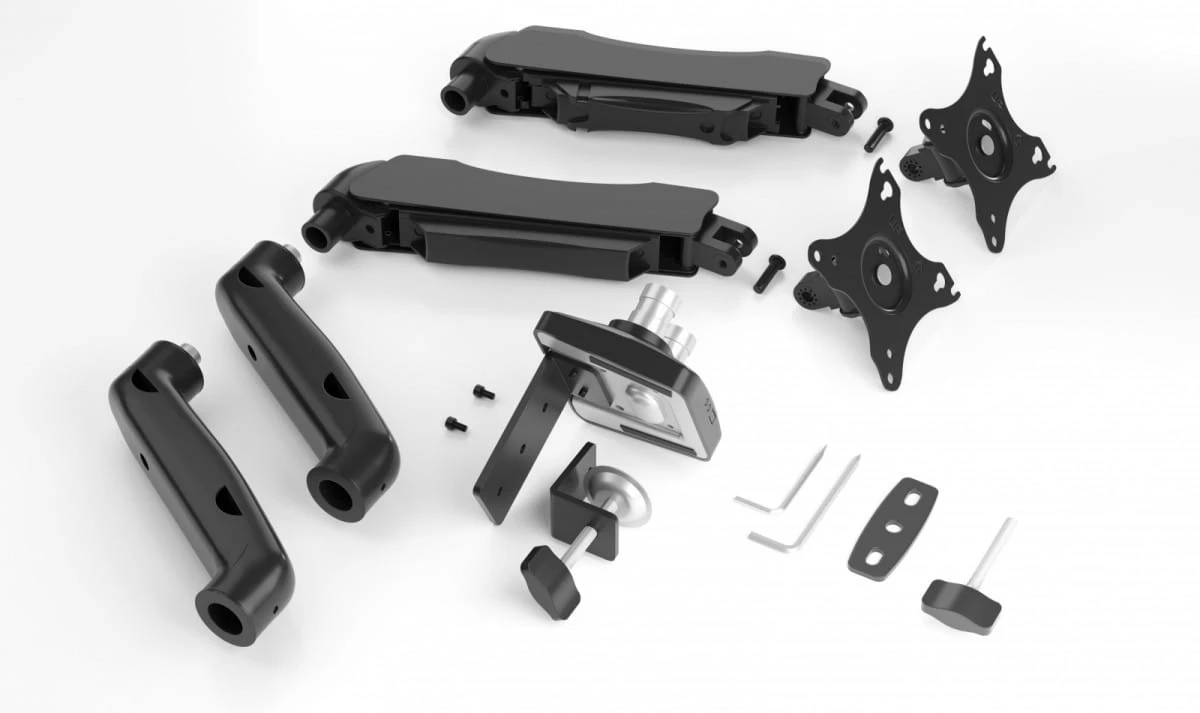 Podwójny uchwyt na biurko do monitorów - Wykonany z wytrzymałej mieszanki stali, plastiku i wysokiej jakości aluminium, ten uchwyt na dwa monitory oferuje wyjątkową stabilność dla dwóch monitorów. Każdy monitor może mieć do 32 cali i ważyć od 2 do 9 kg, zapewniając niezawodną platformę dla twojego miejsca pracy.
