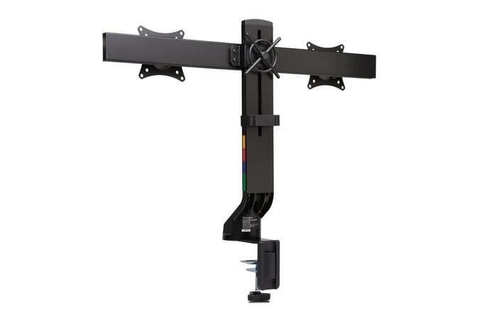 Uchwyt z pokrętłem umożliwia szybką i łatwą regulację wysokości (239-470 mm), pochylenia i obrotu (+/- 10°), zmiany orientacji w poziomie lub w pionie (+/- 180°) oraz zablokowanie ustawienia monitorów. Złącza VESA ułatwiają montaż monitorów.