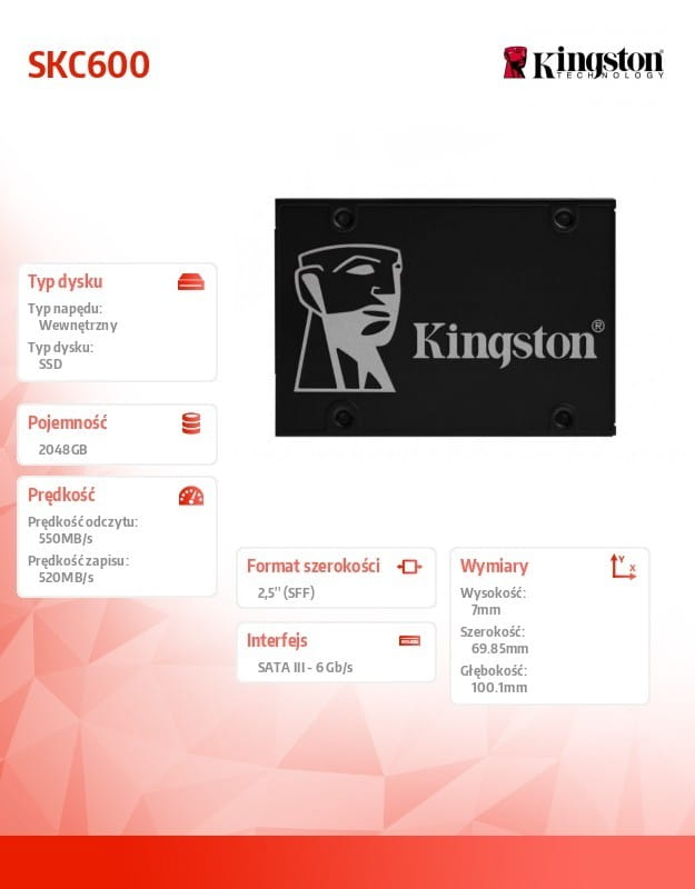 Kingston Dysk SSD KC600 SERIES 2TB SATA3 2.5' 550/520 MB/s