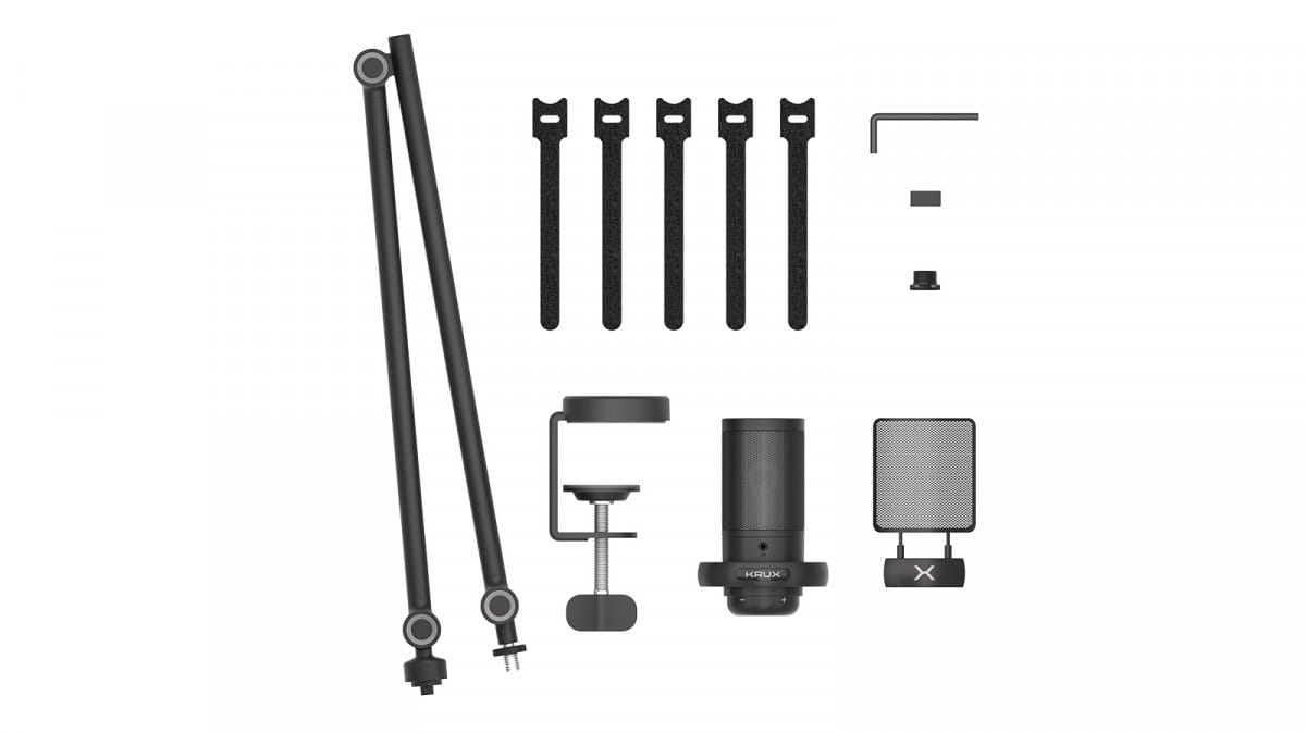 Akcesoria w zestawie: 1× Regulowane ramię mikrofonowe 1× Pop filtr 1× Przewód USB-C 1× Zestaw rzepów montażowych 1× Magnetyczny uchwyt do klucza montażowego 1× Klucz montażowy 1× Instrukcja obsługi