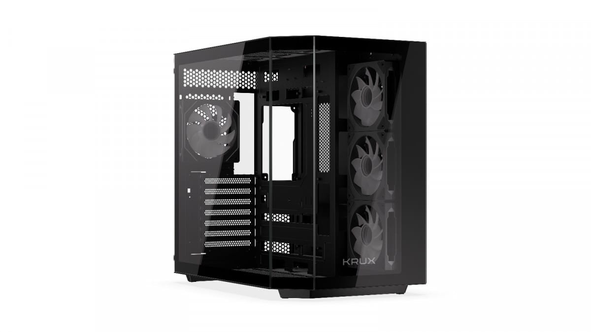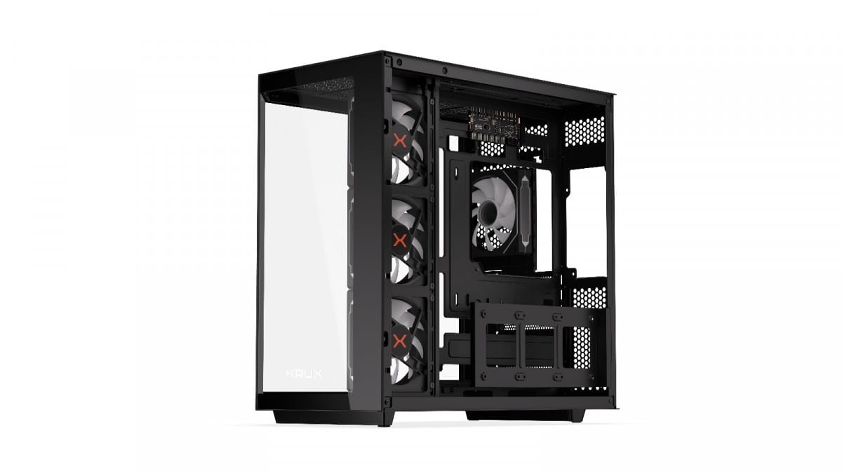 W obudowie Krux Empero zmieścisz podzespoły, takie jak pełnowymiarowe płyty główne ATX (lub mniejsze microATX i mini-ITX), karty graficzne o długości do 420 mm, wieżowe chłodzenie procesora o wysokości do 155 mm, zasilacze o długości do 205 mm, do 5 dysków oraz chłodnice AiO o długości 120, 240, 280, a nawet 360 mm. Domyślnie zamontowany zestaw 4 wentylatorów 120 mm możesz poszerzyć maksymalnie do 10 sztuk.