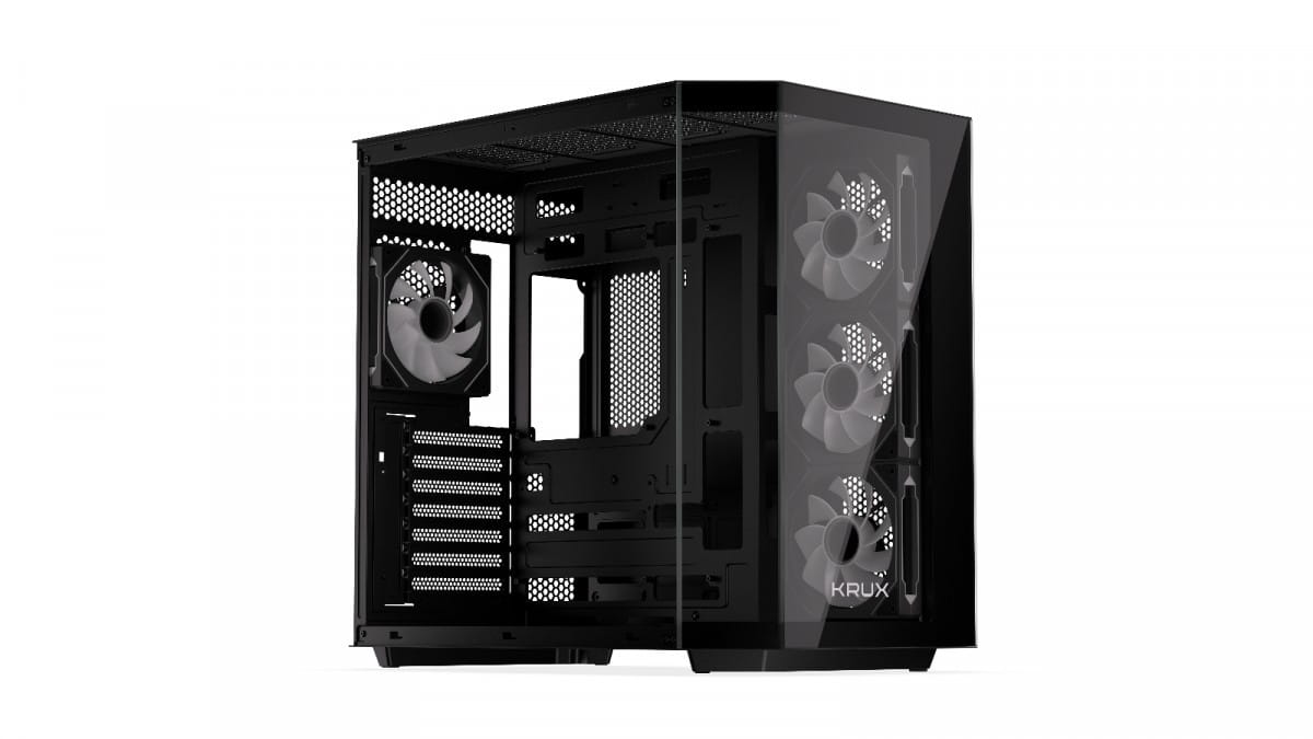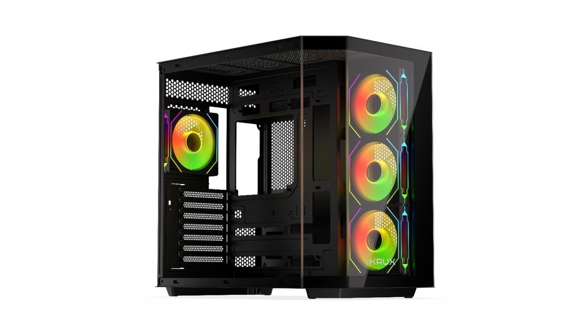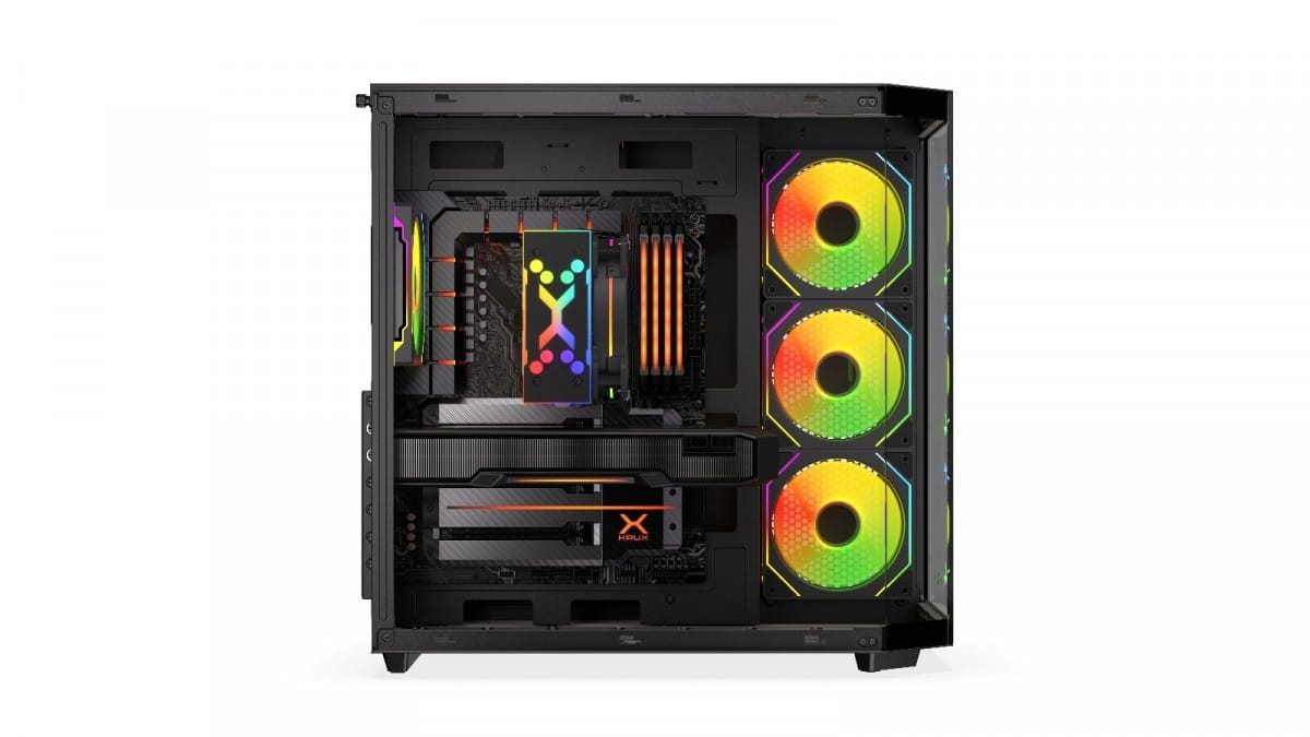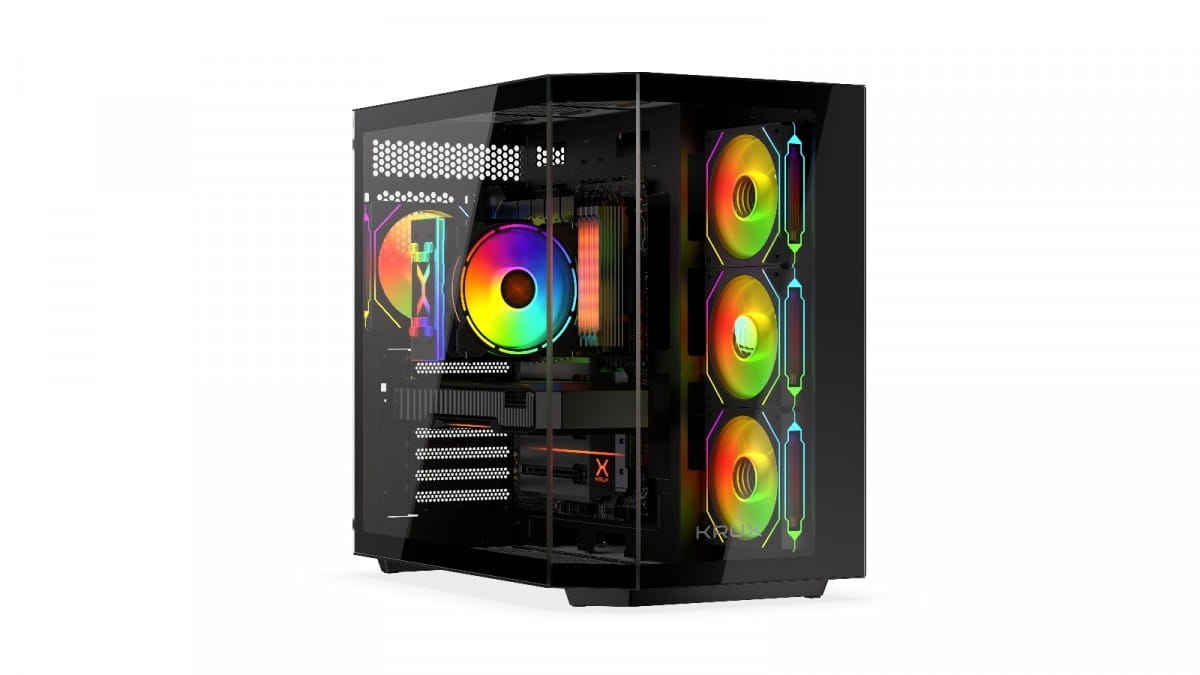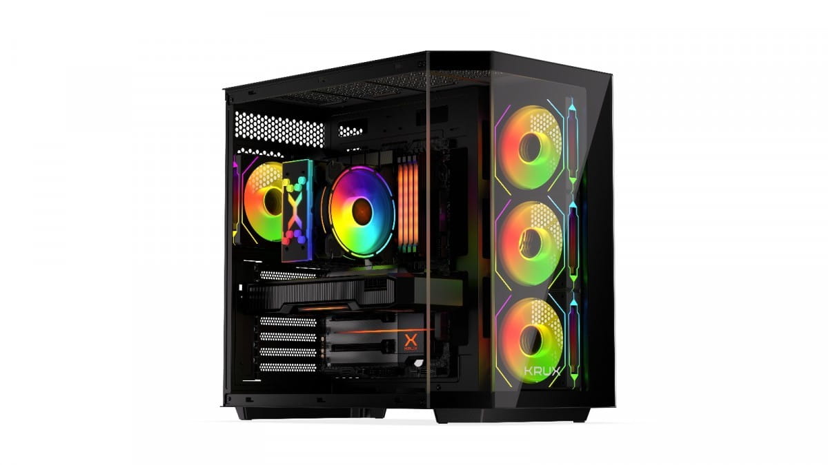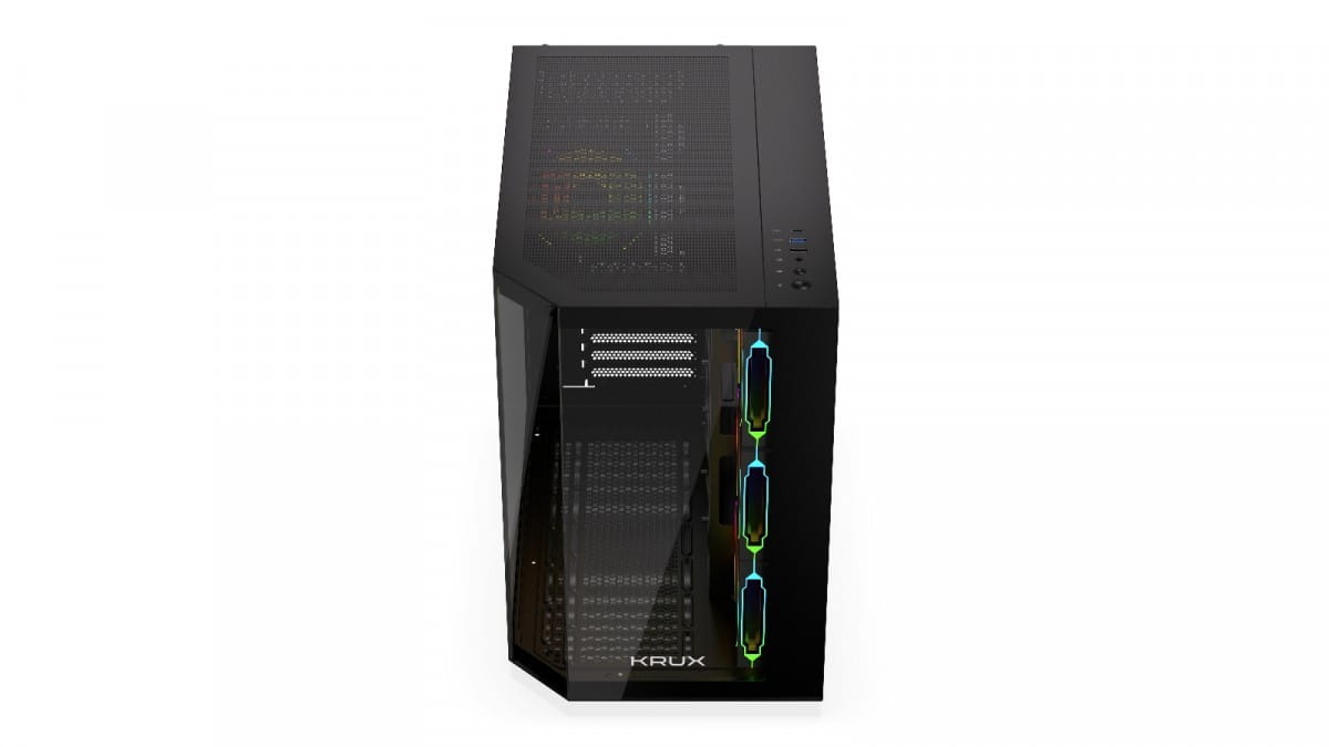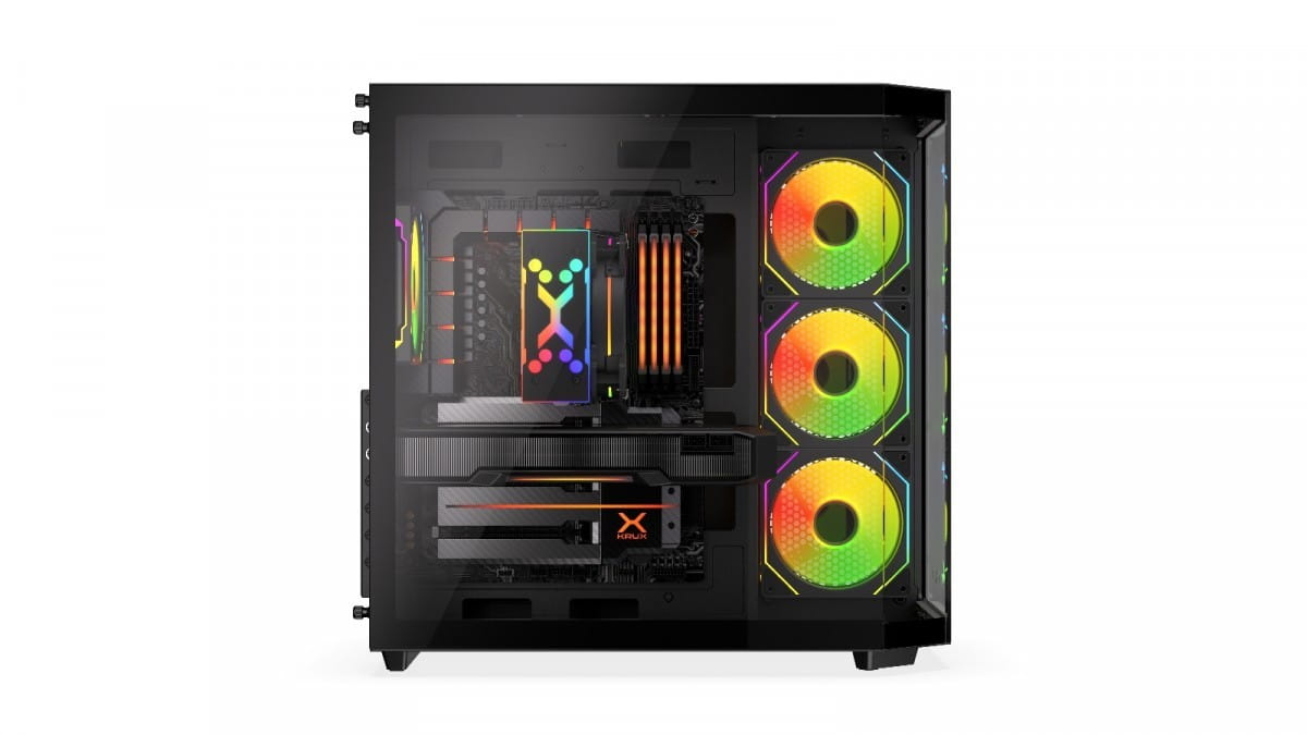 Zadbaliśmy o dobre chłodzenie wnętrza obudowy. W zestawie znajdują się cztery wentylatory Krux 120 mm ARGB PWM z efektownym podświetleniem i regulacją obrotów PWM. Dzięki nim podzespoły komputera będą utrzymywać optymalne temperatury pracy, a cała jednostka rozbłyśnie przykuwającymi wzrok efektami świetlnymi. Co więcej, dzięki łatwym w demontażu filtrom przeciwkurzowym wnętrze pozostanie wolne od zanieczyszczeń.
