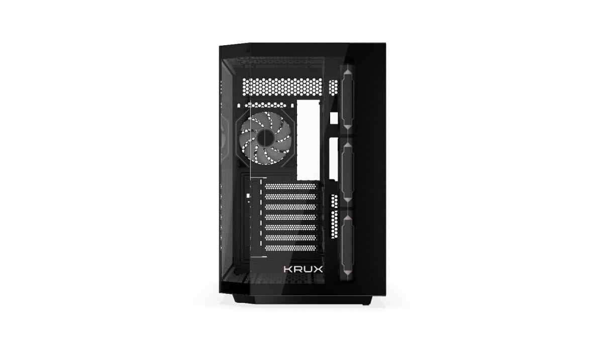 Z obudową Krux Empero dostajesz nie tylko klasyczny boczny panel ze szkła, ale nawet cały przeszklony front. To efekt porównywalny do widoków futurystycznych technologii znanych z filmów sci-fi. Podzespoły będą idealnie widoczne, co świetnie współgra z podświetlanymi elementami. Panele z hartowanego szkła (bok, front i narożny) możesz zdjąć w prosty sposób bez użycia narzędzi są zamontowane na zatrzaski.