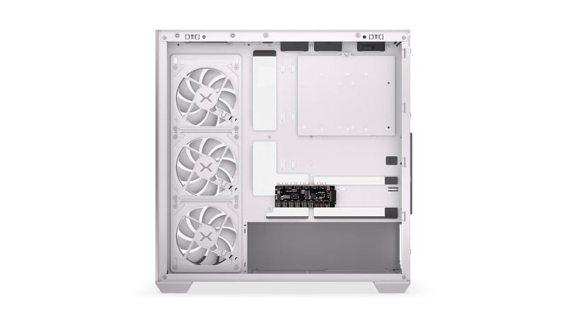 Obudowa Krux Exo White posiada jeszcze jedną cechę, która wyróżnia ją na tle pokrewnych produktów. Jej konstrukcja pozwala na montaż płyt głównych typu hidden-connector. W takich płytach wszystkie wtyki - między innymi do kabli zasilających i wentylatorów - są przerzucone na tył. To zaproszenie do stworzenia czystej i estetycznej konfiguracji, na której będziesz z satysfakcją