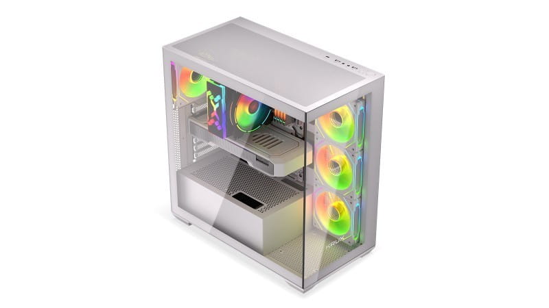 Cały Twój piękny setup widoczny jak na dłoni, a dalej wyborowo bezpieczny. Front i bok obudowy zostały wykonane z hartowanego szkła, wpisując się w trend obudów typu akwarium. Pomyśl, ile ciekawych konfiguracji możesz wyeksponować w ten sposób! Nie mówiąc już o podświetleniu, które świetnie współgra z białą barwą obudowy.