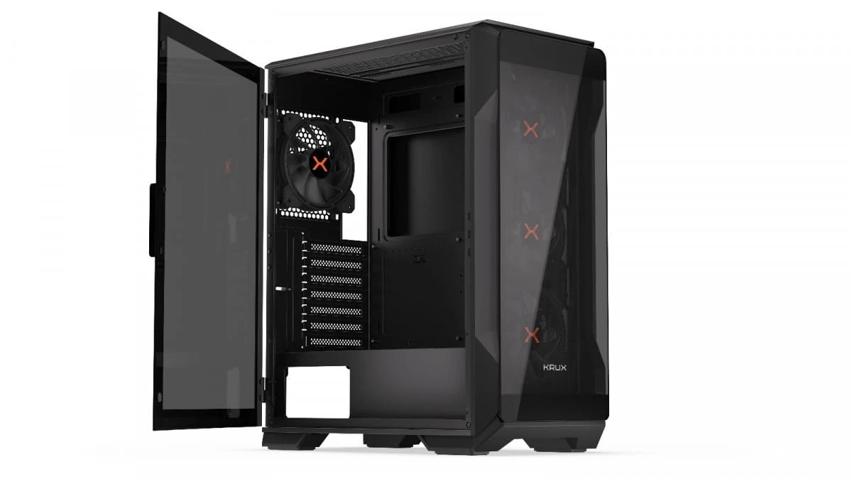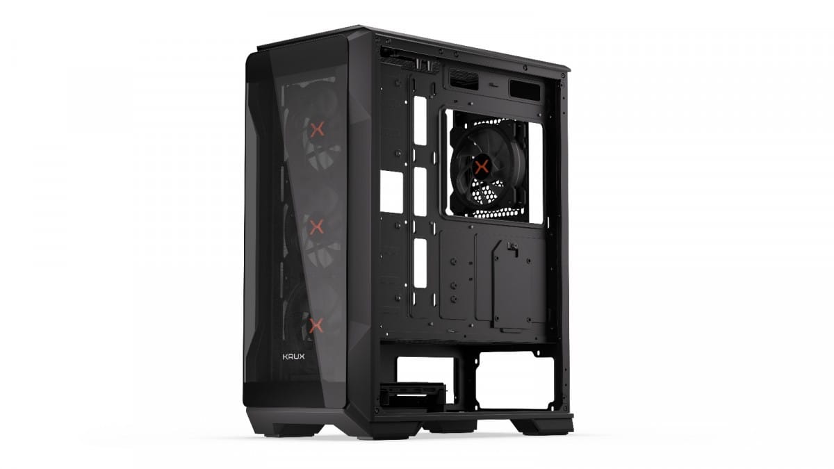 Tym, co wyróżnia Krux Heko na tle innych obudów, jest umiejscowienie slotu płyty głównej. Zostawia ono dużo miejsca na inne komponenty i chłodnicę. A jeżeli zamierzasz uzbroić swój setup w potężną kartą graficzną, to potrzebne też będzie chłodzenie odpowiedniego kalibru. Z tego samego powodu w Heko z powodzeniem wepniesz aż osiem wentylatorów o średnicy 120 mm. I to bez wciskania wszystkiego na siłę.