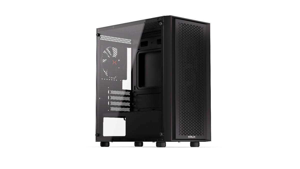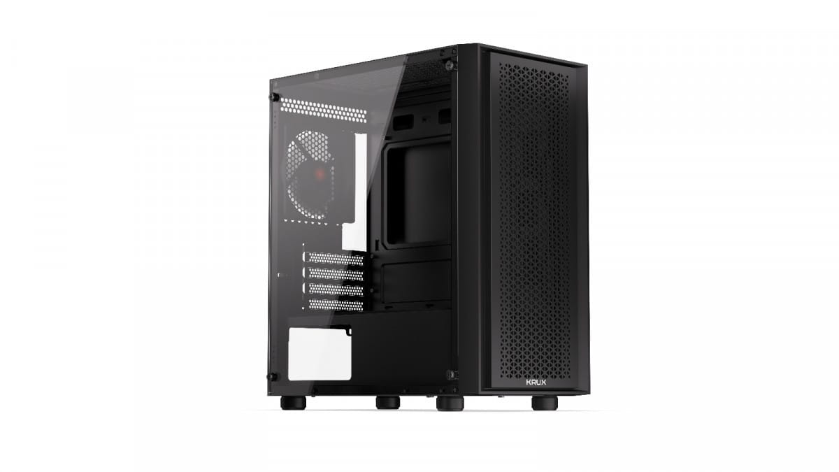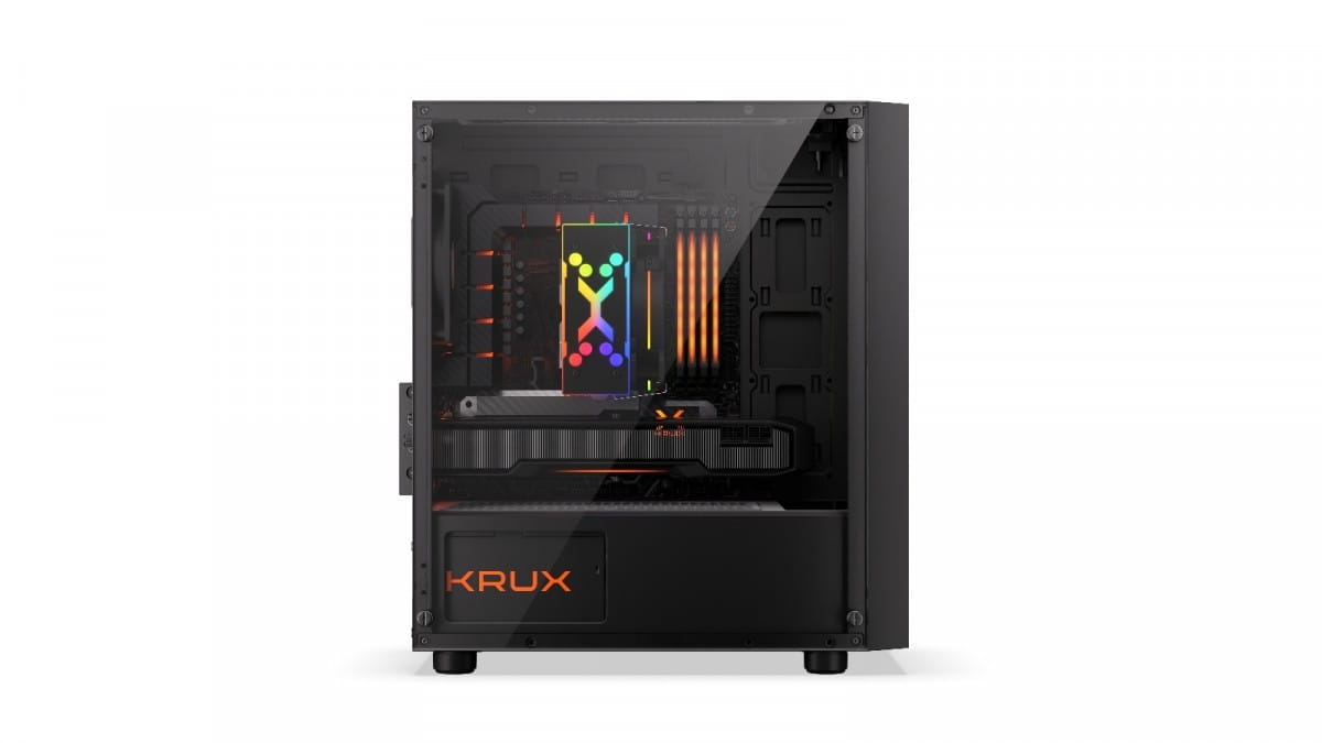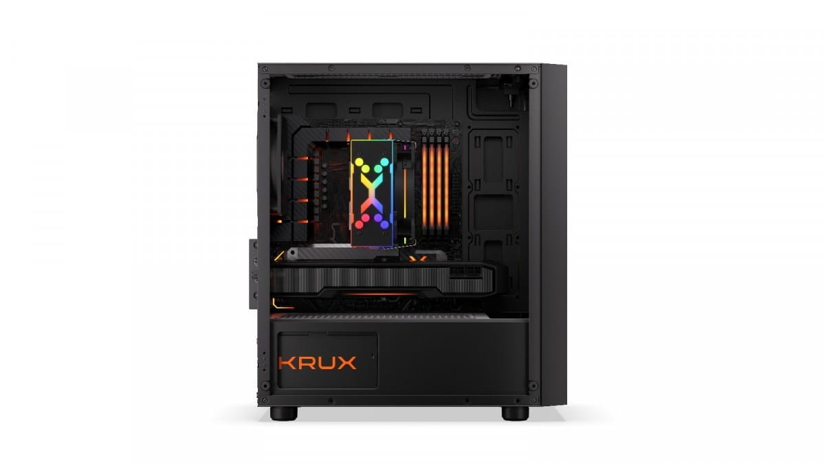 Krux Scor nie dość, że rozmiarowo idealnie wkomponuje się praktycznie w każde stanowisko, to jeszcze jego wewnętrzna przestrzeń została przemyślana tak, by na spokojnie pomieścić wszystkie najpotrzebniejsze komponenty. Znajdzie się tu miejsce na cztery dyski oraz płytę główną w standardzie microATX albo Mini-ITX. Zmieści się tam dosłownie wszystko, czego potrzebujesz, by nie komplikować sobie zbytnio życia.