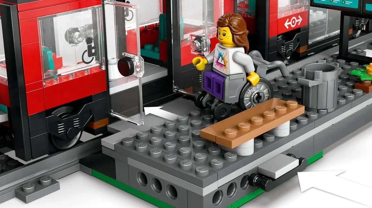 - Zestaw dla dzieci, które uwielbiają się bawić - zabawkowy tramwaj ma siedzenia dla minifigurek i otwierane podwójne drzwi, a na peronie stacji znajdują się wysuwane płyty pomostowe umożliwiające wsiadanie
