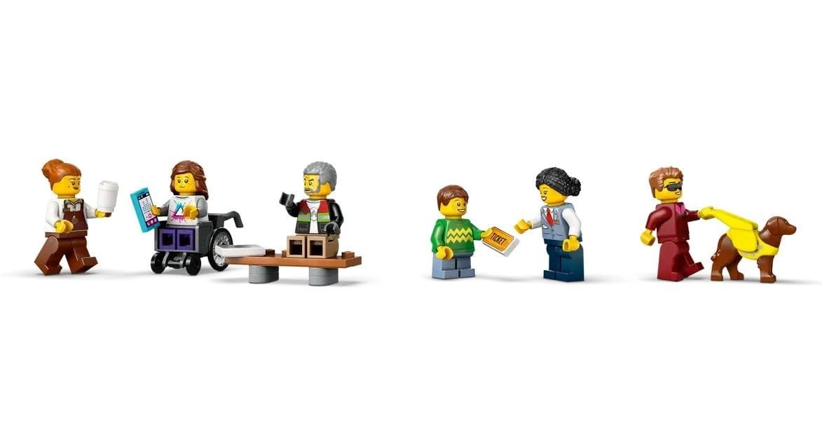 - Zawartość zestawu - ten zestaw LEGO City zawiera wszystko, czego dzieci potrzebują do zbudowania tramwaju i stacji z peronem i kawiarnią, a także sześć minifigurek i figurkę psa asystującego
