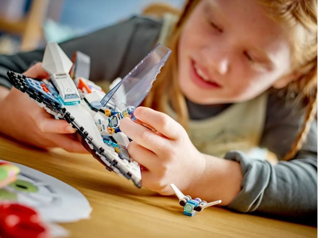 - Zawartość pudełka - ten zestaw dla dzieci w wieku od sześciu lat zawiera wszystko, czego potrzebują dzieci do zbudowania statku międzygwiezdnego, robota-drona oraz minifigurkę kosmicznego pilota