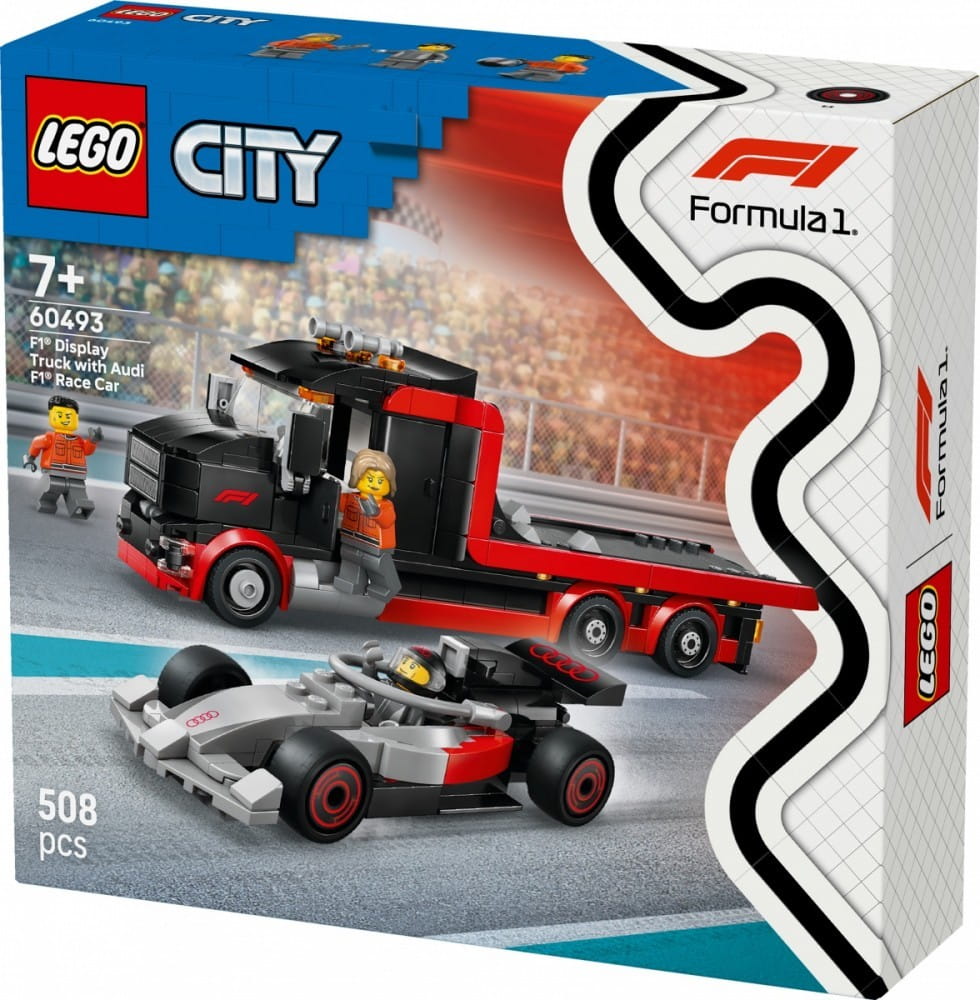 - Zestaw z bolidem Formuły 1 - młodzi fani szybkich samochodów, fajnych ciężarówek i wyścigów Formuły 1 w wieku od siedmiu lat będą zachwyceni tym zestawem LEGO City Ciężarówka F1 z bolidem Audi F1