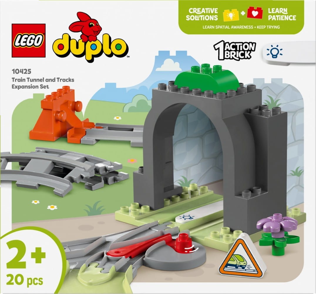 Ta kreatywna zabawka zawiera model tunelu i 10 elementów torów, w tym komin i dwustronną zwrotnicę, dzięki której dzieci mogą zmieniać kierunek jazdy pociągu. Klocek funkcyjny zapala światła w ciemnym tunelu podczas przejazdu interaktywnego pociągu z zestawów 10427 i 10428.