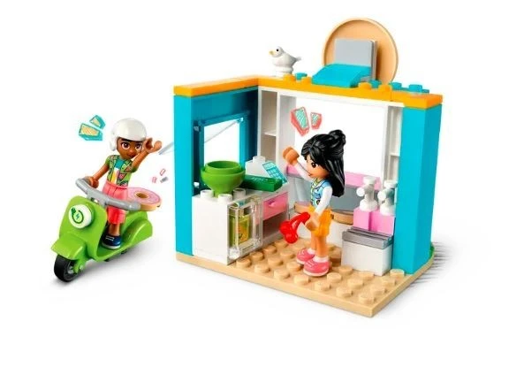 - Z dwoma minilaleczkami zestaw zawiera postacie LEGO Friends, Liann i Leo, okienko do obsługi i akcesoria, w tym skuter, ptaka, pączki, sok, pieniądze, stół i dwa krzesła