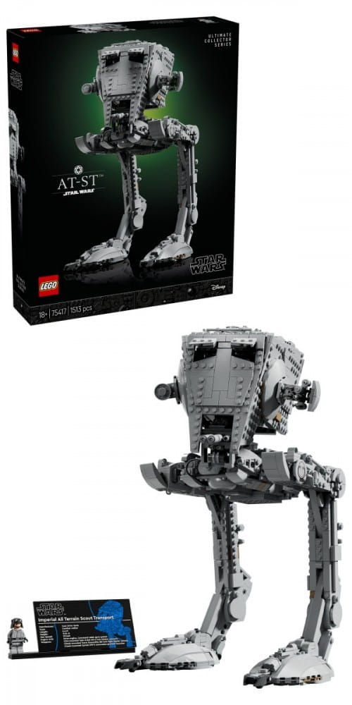 - Zestaw z maszyną kroczącą AT-ST dla dorosłych - zbuduj Maszynę kroczącą AT-ST LEGO Star Wars Ultimate Collector Series, która pojawiła się na polach bitew w klasycznej sadze Gwiezdnych Wojen