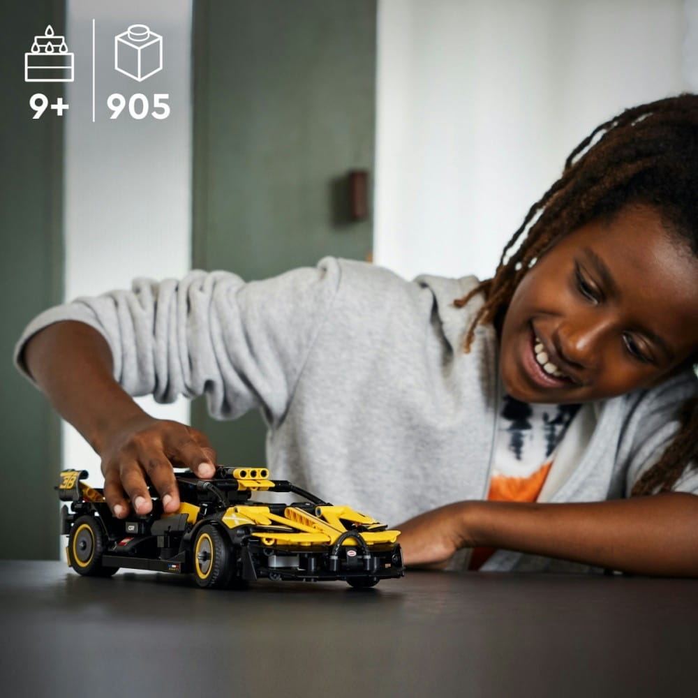 Zainspiruj dziewięciolatka lub starsze dziecko do zbudowania własnego modelu samochodu wyścigowego dzięki zestawowi LEGO Technic Bolid Bugatti (42151). Dzieci mogą odtwarzać realistyczne detale, w tym silnik W16, układ kierowniczy i drzwi skrzydłowe. Wspaniały wygląd auta przykuwa uwagę swoją czarno-żółtą kolorystyką i realistycznymi naklejkami. Po zbudowaniu i obejrzeniu samochodu można z dumą ustawić model kolekcjonerski jako ozdobę.