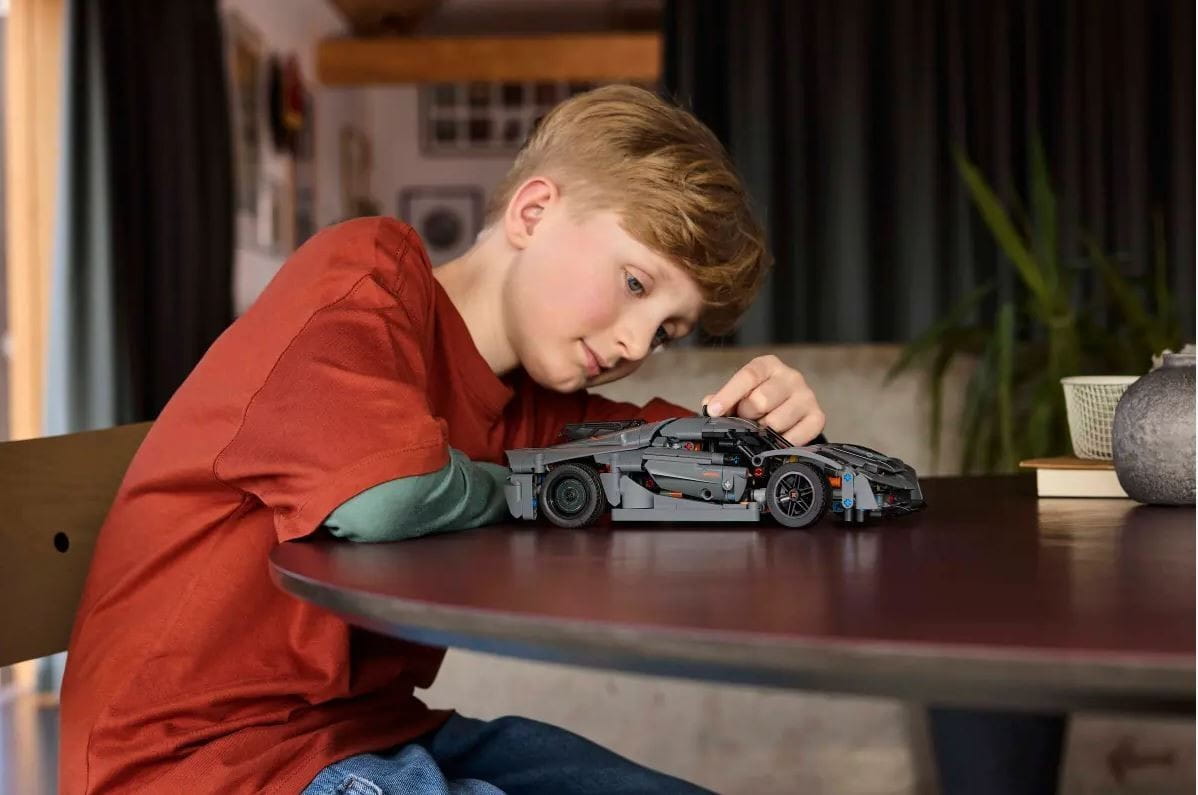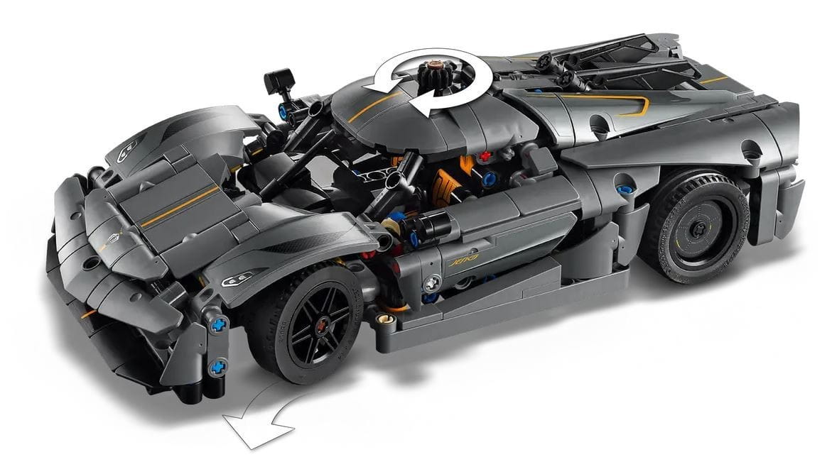 Podczas budowania ruchomego silnika V8 i mechanizmu różnicowego młodzi konstruktorzy mogą zgłębiać tajniki inżynierii. Następnie mogą sprawdzić działanie układu kierowniczego za pomocą odczepianego pokrętła mieszczącego się z przodu samochodu. Fajną funkcją tego zabawkowego pojazdu jest także dwuścienny system drzwi synchro-helix, które obracają się o 90 stopni i odchylają się na zewnątrz, zupełnie jak w prawdziwym hipersamochodzie.