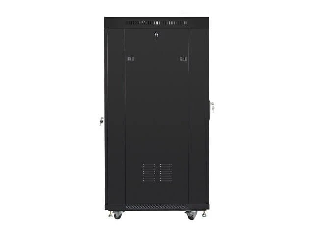 Szafa umożliwia pełną regulację głębokości pionowych szyn montażowych. Wyposażona jest w przednie drzwi perforowane z zamkiem, z możliwością montażu prawo lub lewo stronnego. Posiada zdejmowane boczne panele (z zamkami w zestawie) i tylne perforowane drzwi z zamkiem. Istnieje możliwość wprowadzenia okablowania poprzez zamykany górny i dolny panel (z zaślepkami w zestawie).