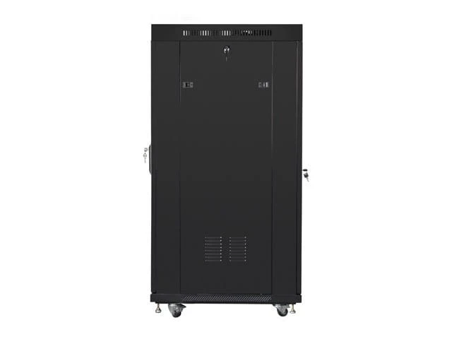 Szafa umożliwia pełną regulację głębokości pionowych szyn montażowych. Wyposażona jest w przednie drzwi ze szkła hartowanego z zamkiem, z możliwością montażu prawo lub lewo stronnego. Posiada zdejmowane boczne panele (z zamkami w zestawie) i tylne solidne stalowe drzwi z zamkiem. Istnieje możliwość wprowadzenia okablowania poprzez zamykany górny i dolny panel (z zaślepkami w zestawie).