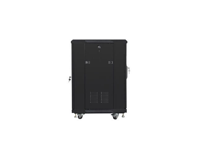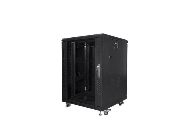 Szafa stojąca jednosekcyjna Lanberg FF01-6615-12B to rozwiązanie przeznaczone do budowy sieci, montażu okablowania oraz sprzętu w rozmiarze 19 o maksymalnym łącznym udźwigu do 800 kg. Może być stosowana w centrach danych, które wymagają dużej ilości miejsca w szafach na urządzenia. Szafa z powodzeniem spełni swoją rolę w dużych, rozbudowanych sieciach i serwerowniach, zarówno w małych, średnich jak i dużych firmach oraz korporacjach. Sprawdzi się również w instalacjach niskoprądowych takich jak sieci telewizji kablowych, systemy alarmowe, przeciwpożarowe, kontroli dostępu oraz systemy monitoringu CCTV i IP. Konstrukcja wykonana jest przy użyciu wysokiej jakości stali walcowanej, charakteryzuje się znakomitym designem i jakością wykonania. Szafa umożliwia pełną regulację głębokości pionowych szyn montażowych. Wyposażona jest w przednie drzwi ze szkła hartowanego z zamkiem, z możliwością montażu prawo lub lewo stronnego. Posiada zdejmowane boczne panele (z zamkami w zestawie) i tylne solidne stalowe drzwi z zamkiem. Istnieje możliwość wprowadzenia okablowania poprzez zamykany górny i dolny panel (z zaślepkami w zestawie). W zestawie znajduje się panel wentylacyjny z 2 wentylatorami 230V. Dodatkowo w komplecie załączone są akcesoria do mocowania szyn nośnych, śruby M6 oraz zaślepki paneli wejściowych, a dzięki konstrukcji do samodzielnego montażu (flat pack), całość znajduje się w 3 płaskich opakowaniach co ułatwia transport.