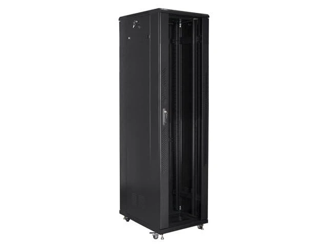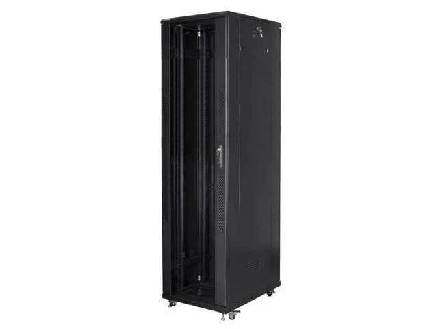 Szafa stojąca jednosekcyjna Lanberg FF01-8837-12B to rozwiązanie przeznaczone do budowy sieci, montażu okablowania oraz sprzętu w rozmiarze 19 o maksymalnym łącznym udźwigu do 800 kg. Może być stosowana w centrach danych, które wymagają dużej ilości miejsca w szafach na urządzenia. Szafa z powodzeniem spełni swoją rolę w dużych, rozbudowanych sieciach i serwerowniach, zarówno w małych, średnich jak i dużych firmach oraz korporacjach. Sprawdzi się również w instalacjach niskoprądowych takich jak sieci telewizji kablowych, systemy alarmowe, przeciwpożarowe, kontroli dostępu oraz systemy monitoringu CCTV i IP. Konstrukcja wykonana jest przy użyciu wysokiej jakości stali walcowanej, charakteryzuje się znakomitym designem i jakością wykonania. Szafa umożliwia pełną regulację głębokości pionowych szyn montażowych. Wyposażona jest w przednie drzwi ze szkła hartowanego z zamkiem, z możliwością montażu prawo lub lewo stronnego. Posiada zdejmowane boczne panele (z zamkami w zestawie) i tylne solidne stalowe drzwi z zamkiem. Istnieje możliwość wprowadzenia okablowania poprzez zamykany górny i dolny panel (z zaślepkami w zestawie). W zestawie znajduje się panel wentylacyjny z 4 wentylatorami 230V. Dodatkowo w komplecie załączone są akcesoria do mocowania szyn nośnych, śruby M6 oraz zaślepki paneli wejściowych, a dzięki konstrukcji do samodzielnego montażu (flat pack), całość znajduje się w 4 płaskich opakowaniach co ułatwia transport.