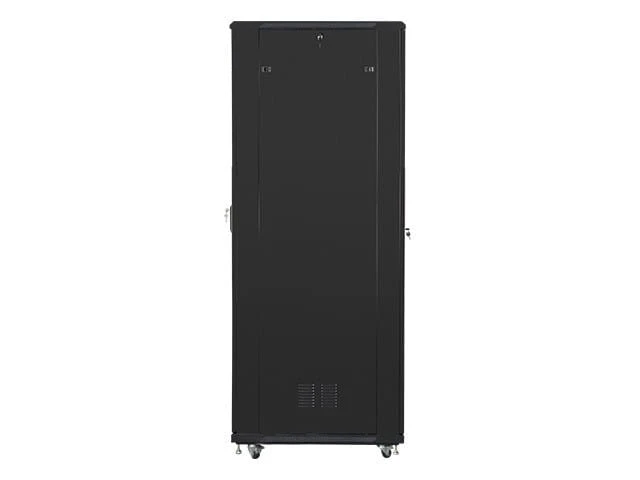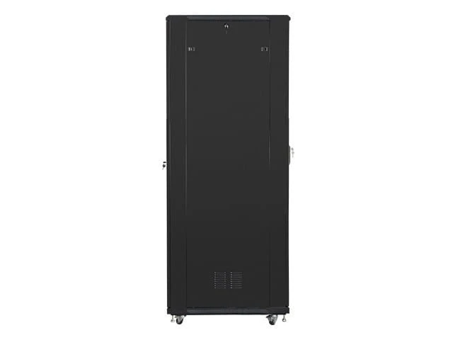 Pozostałe parametry: Panel podłogowy: 4 kółka z hamulcem + regulowane nóżki Panel wentylacyjny: 4 wentylatory 230V w górnej obudowie Rodzaj drzwi: Przednie - szyba hartowana, tylnie - stalowe Zgodność ze standardami: ANSI/EIA RS-310D, IEC297-2, DIN41494; PART1 & PART7, ETSI Otwory kablowe: góra, dół (regulowany)
